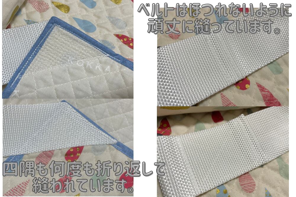 肩に当たる側には綿が入っているので、抱っこした時の肩へのベルトの食い込みが軽減します。