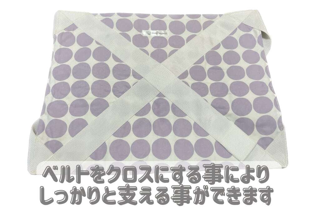 クロスのベルトと内側のキルト生地でしっかりと支えます。